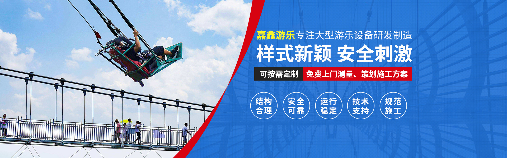 新鄉市嘉鑫游樂設備有限公司是旅游景區、公園、游樂場的游樂規劃向導。公司主要提供滑索、吊橋、水上項目、叢林飛躍、空中自行車、滑道、拓展等游樂設施的制造、安裝、維修及銷售業務。另有景區規劃設計、景觀設計、景點打造、滑漂線路勘察設計等工程咨詢服務。  公司按照現代企業制度運作,設置精干的管理骨架培養“敬業、務實、超越”的團隊精神,不斷完善人才激勵與競爭機制,建立和完善了科學的管理體系。公司技術力量雄厚、配套設施齊全。  公司秉承真誠服務客戶的宗旨、完善的服務、豐富的施工經驗及迅捷的手續辦理能力,贏得了大批的客戶和口碑。選擇嘉鑫,請您放心,我們會用完善的服務換取您的滿意。  公司遵循“質量過硬、守信合同”的經營宗旨,奉行“誠信為本、奉獻...